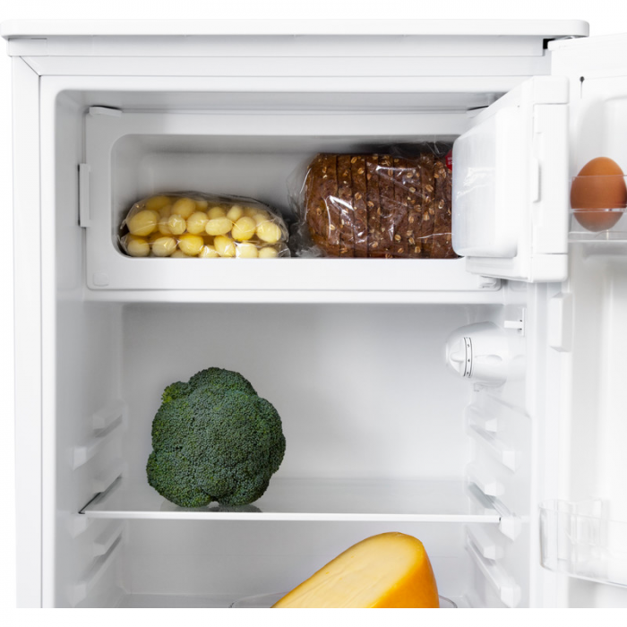 De Inventum CKV500 is een tafelmodel koelkast met een overzichtelijke indeling. Zo vind je je boodschappen snel terug en zie je meteen wat je nog moet halen in de supermarkt. Groente en fruit bewaar je onderin de groentelade en je bakjes yoghurt, vleeswaren en sausjes verdeel je over het plateau en de 3 deurvakken. In de vriezer is plek om een brood te bewaren, zodat je altijd ontbijt in huis hebt. Of je bewaart daar een pak met je lievelingsijsjes en een zak frituursnacks voor als je wat te vieren hebt. Staat de koelkast niet koud genoeg? Je past de temperatuur gemakkelijk aan met de draaiknop aan de binnenkant.
